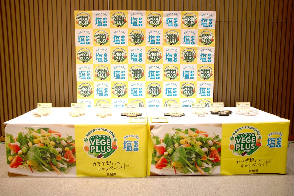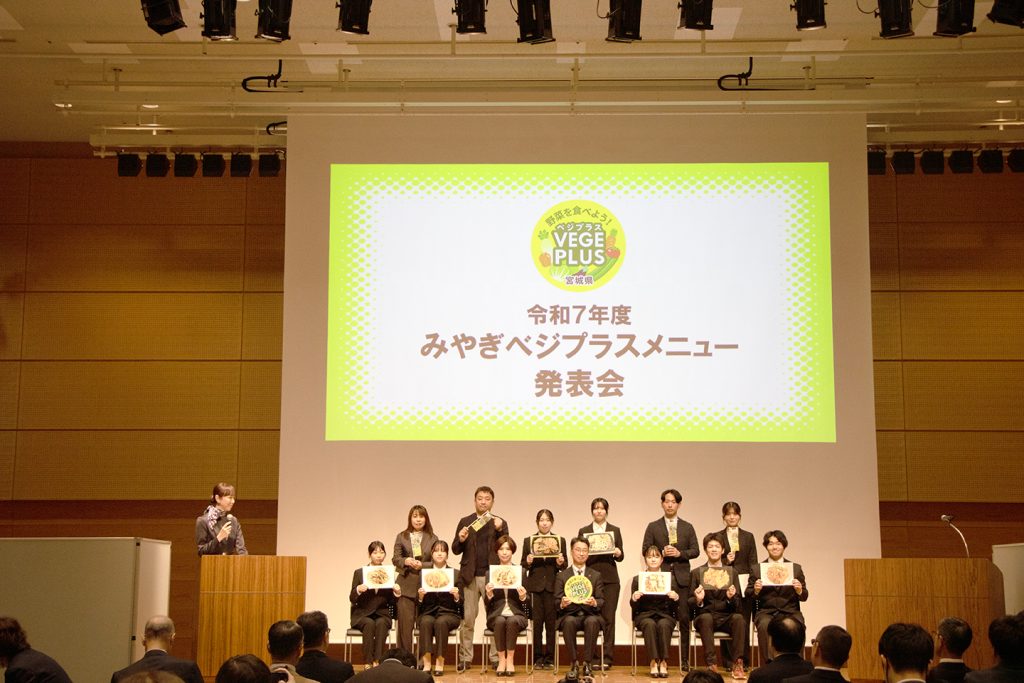 宮城県内の大学と企業で商品・レシピ開発を行い、今回計12品のベジプラスメニューが発表されました。
